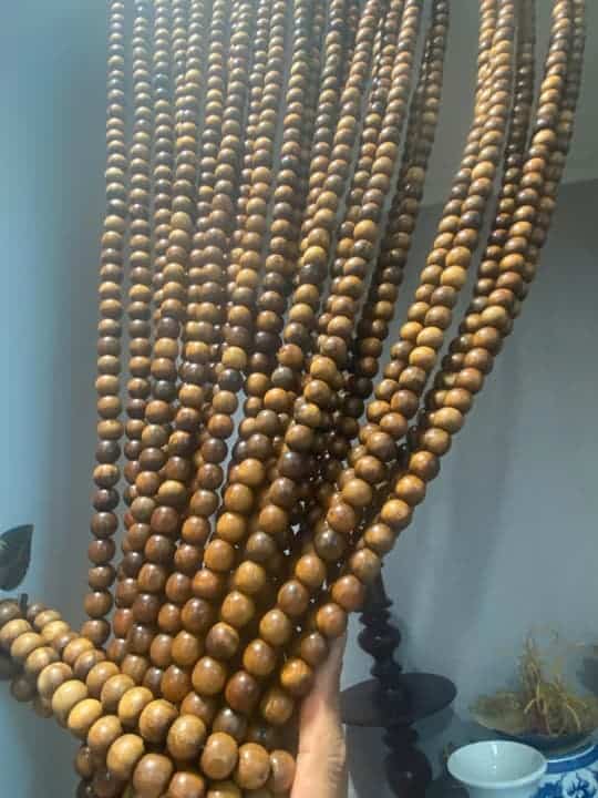 – Loại hạt: Hạt gỗ bách xanh 12 ly (12mm) vừa đủ dày để đảm bảo độ bền, vừa tạo cảm giác tinh tế mà không quá nặng nề, phù hợp để đan thành rèm phòng thờ.