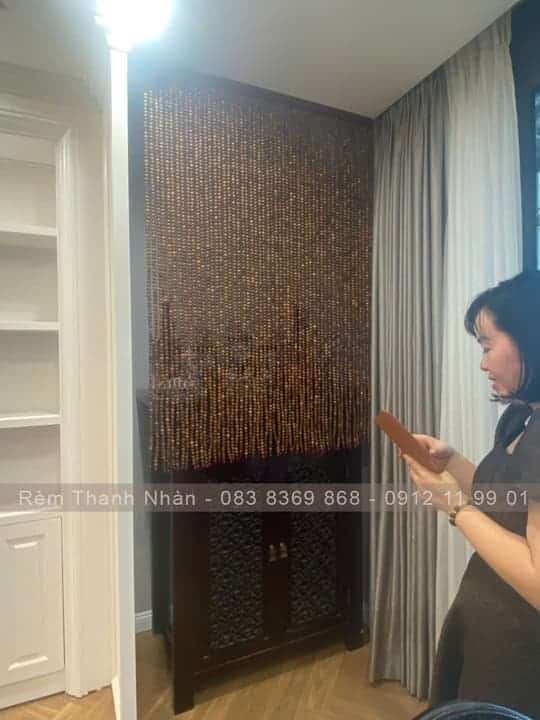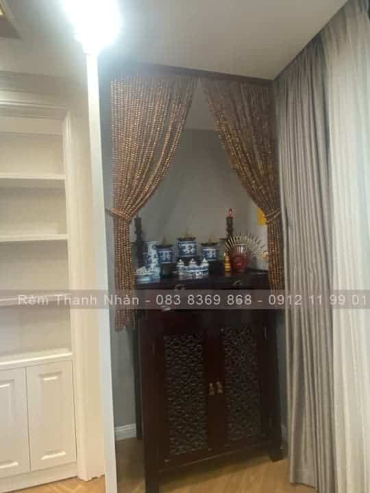 2 – Rèm treo cửa chính phòng thờ gỗ hạt Bách Xanh
